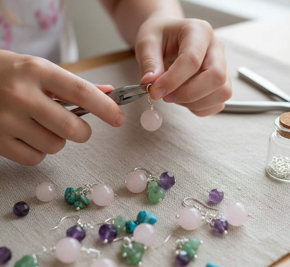 Chaque paire est unique, créée à la main pour sublimer l'éclat brut de ces véritables pierres naturelles. Laissez-vous séduire par un bijou qui a du sens, né de la passion d'une jeune créatrice pour les merveilles de la nature."