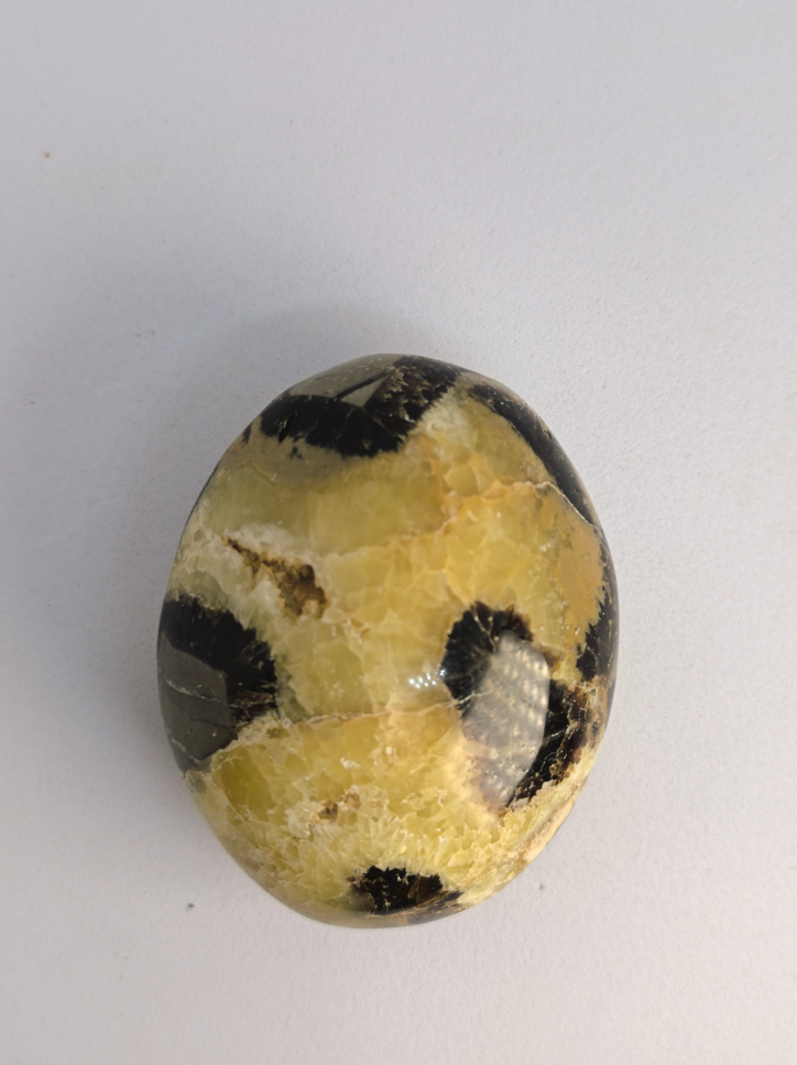 La septaria, également appelée nodule septarien ou pierre septarienne, est une roche sédimentaire composée d’une matrice d’argile ou de calcaire traversée de veines de calcite et d’aragonite. Ses motifs naturels en formes de cloisonnements lui donnent un aspect unique, souvent comparé à une carapace de tortue. C’est une pierre appréciée pour son énergie d’ancrage et de stabilisation.