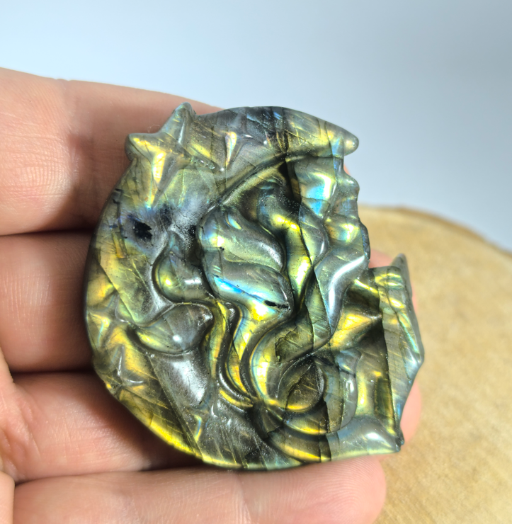 Comment l'Entretenir ? La Labradorite sculptée demande une attention douce pour préserver ses détails et ses reflets :