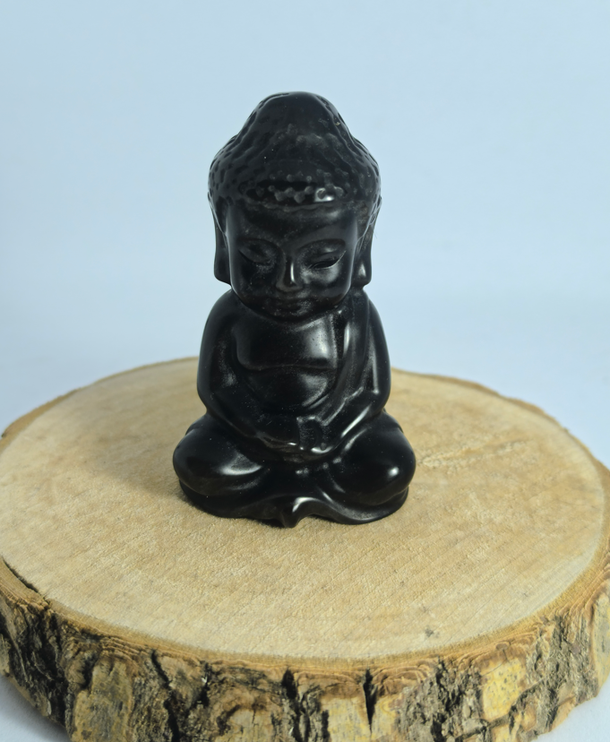 Le Bouddha en Obsidienne Argentée : Sagesse et Miroir de l'Âme